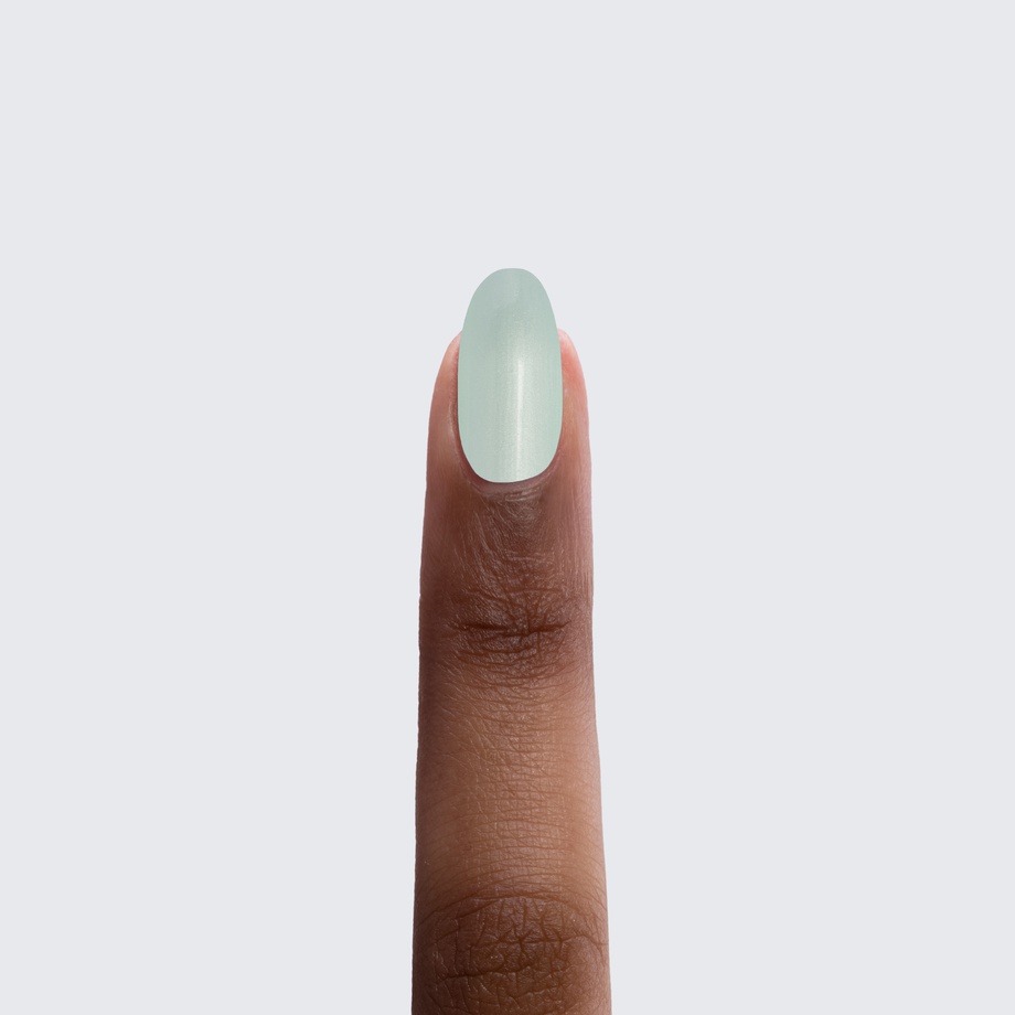 Teal. Pastel. Pearl finish. Opaque. Neutral undertone.